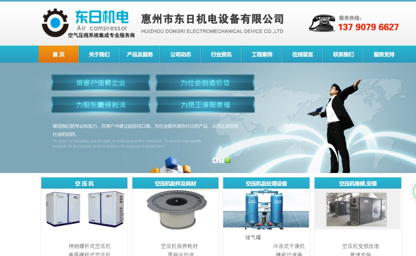 惠州市東日機(jī)電設(shè)備有限公司是一家從事空氣壓縮設(shè)備.工程設(shè)計安裝.環(huán)保節(jié)能改造的專業(yè)集成服務(wù)商。公司是上海神鋼壓縮機(jī)惠州特約經(jīng)銷商.浙江鑫磊空壓機(jī)惠州代理商。公司為用戶提供各式空壓機(jī).干燥機(jī).儲氣罐等配套設(shè)備。