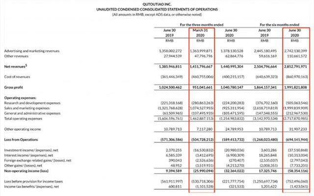 QuestMobile數(shù)據(jù)顯示,在今年一季度暴跌19.9%后,二季度伴隨疫情逐漸恢復(fù),市場規(guī)模同比增長18.7%,趣頭條營收14. 4 億元,同比微增4%,跑輸大盤。