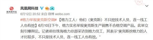 6 月 13 日消息,“格力舉報奧克斯空調(diào)”事件持續(xù)發(fā)酵,引發(fā)業(yè)界廣泛關(guān)注。